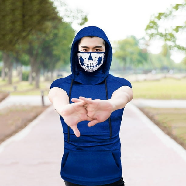 Mens Skull Mask Button Sports Vest Hooded Splice Large Open Forked Male Vest Walmart Com